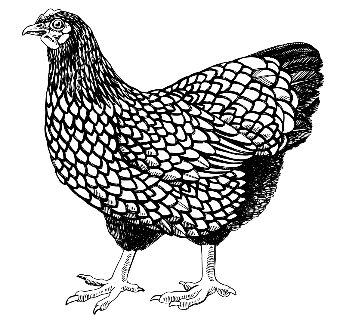 Wyandotten sind mittelgroße, ruhige, zutrauliche und friedliche Hühner. Charakteristisch für diese Rasse ist ein unterschiedlich gemustertes